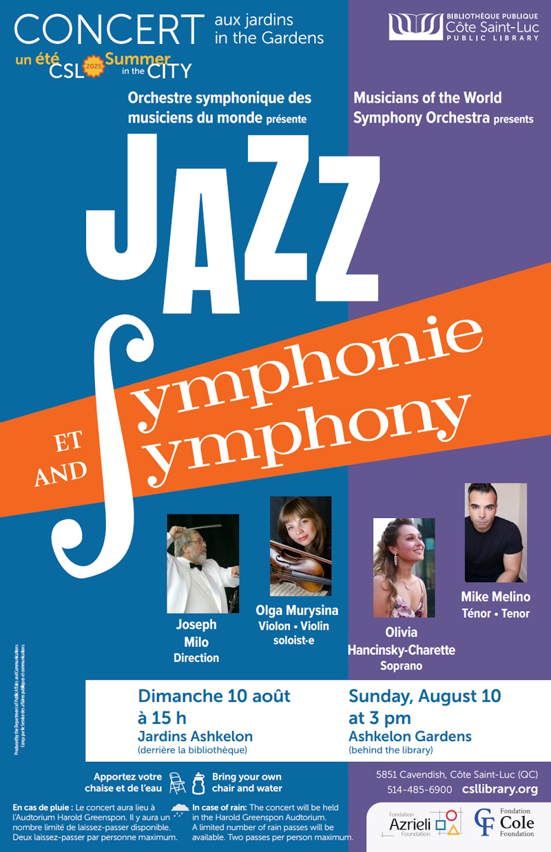 Please note that we will have a special tribute to Bob Slapcoff (in our August 10th concert, Jazz & Symphony..in the cote St. Luc Library Garden) our great percussionist who passed away suddenly and unexpectedly in Nov/24. He was with us from the beginning of the OSMM/MWSO formation…and always an inspiration.